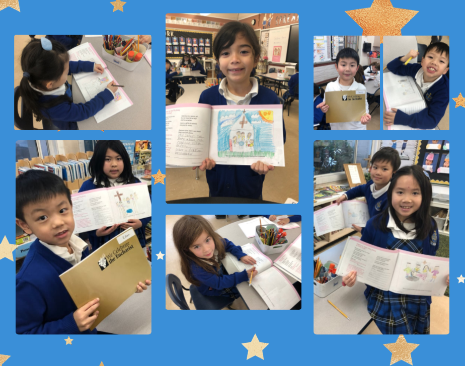 Congratulations! You have successfully survived your first week of the First Communion Program! Thank you very much for the dedication and commitment you have shown this past week. The students were so excited to receive their Gold Books and were even more excited to show you the work that they completed in the first chapter. They also did a wonderful job participating actively during the Mass and sharing their knowledge of the theme. The children were beaming after they were accepted as candidates for First Communion! I can’t wait for the upcoming weeks and for them to continue on this very special journey!