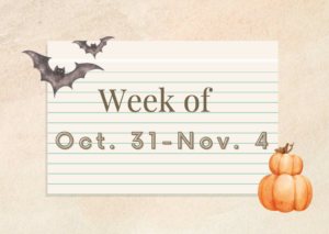 - Halloween Dress Down Day – costumes (following guidelines in the Thursday letter) or orange/black clothing
