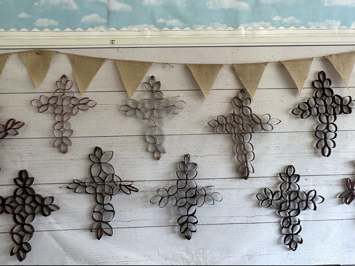 Wishing you and your loved ones a blessed and happy Easter. The Grade Four class made beautiful crosses for Holy Week using recycled materials. Please see images of them below.