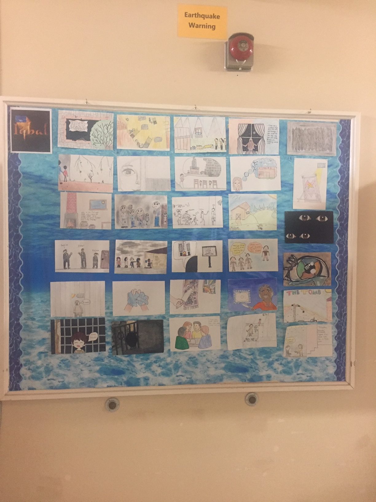 Our featured image is from Iqbal. The students are assigned roles within their group and the artist’s job is to visually represent that chapter. We are so pleased with the amount of effort and detail within each piece of art.
