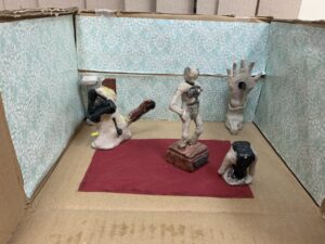 What a wonderful event we had on Thursday. As you can see from the photos below, it truly was a celebration of the artistic talents of this class in music, drama, video making, painting, sculpting, model making and prop making. Bravo, Grade 7!