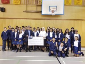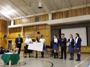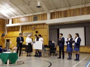 Thank you again to all of the Grade 7’s for their efforts to make our fundraiser a big success. At assembly on Friday June 15th, we presented a cheque for $869.46 to the Door is Open! Check out the photos below: