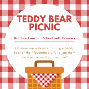 - Just a little fun in the sun! The children are welcome to bring a teddy bear or their favourite stuffy for a picnic on the grass field!