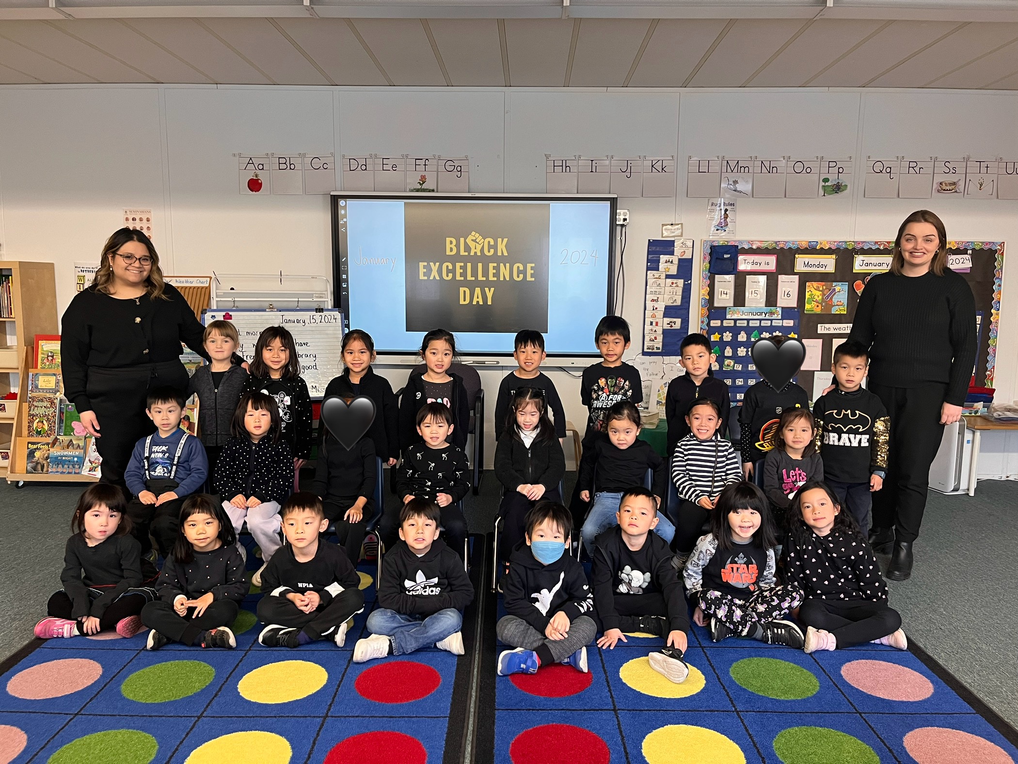 Here is an image of us on Black Excellence Day in support of anti-racism. The students watched a Sesame Street video about treating people with kindness no matter the colour of their skin. We look forward to celebrating Black History Month in February and learning more about the contributions of Black Canadians to our country.
