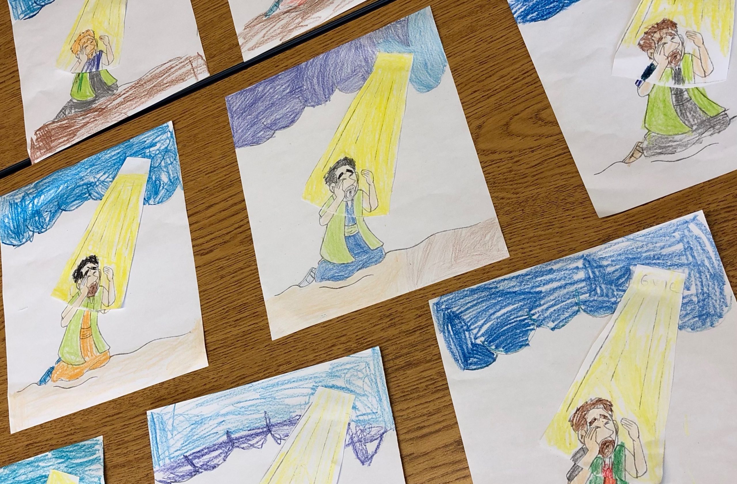 This week, we celebrated the Feast Day of St. Paul! The children learned how Saul began his life being very mean to those who loved Jesus. Then, after seeing a bright light and hearing Jesus’ voice, Saul turned his life around and began to believe in Him. Just like his heart changed, Saul’s name also changed and he became known as Paul. The students discussed how St. Paul told the truth about God to others by writing letters and brainstormed ways they could live out their superpower of Honesty too!