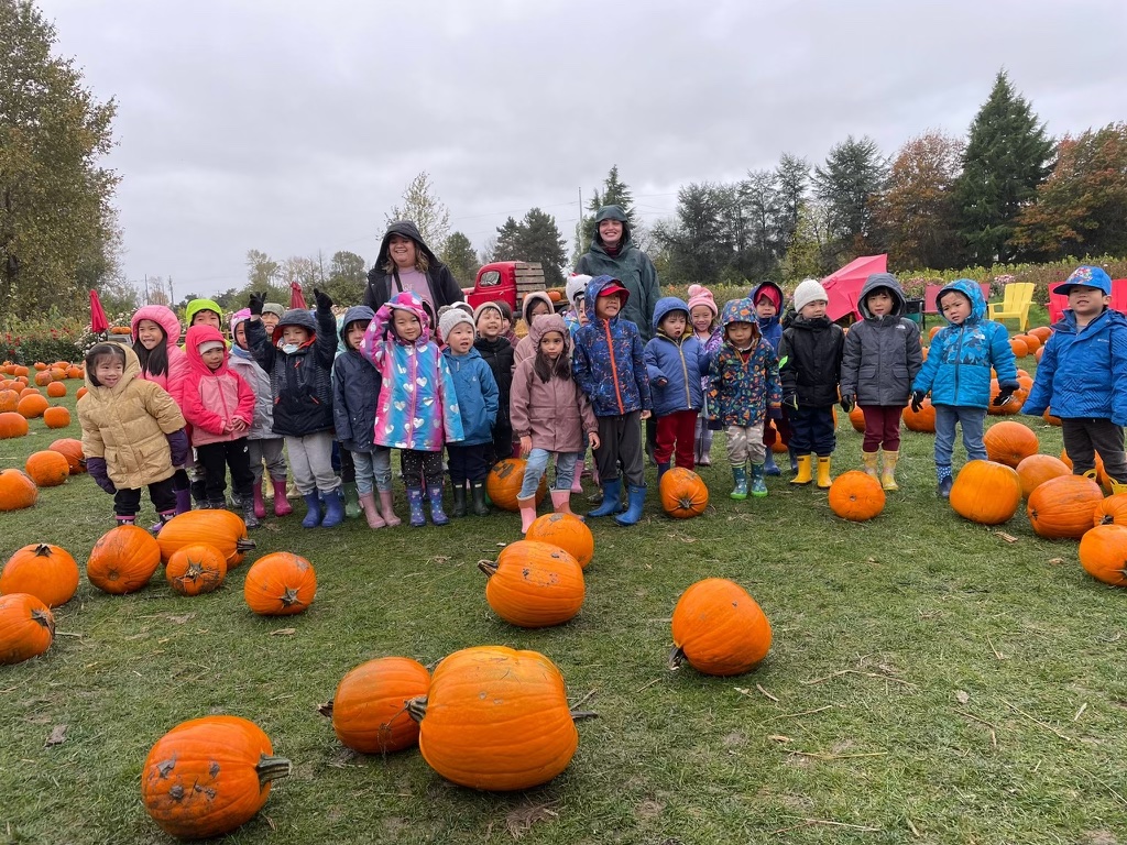 Here is a picture from our trip to the Pumpkin Patch! Even with the rain, the children had lots of fun picking their pumpkin, singing songs on the wagon and seeing all the animals at the farm.