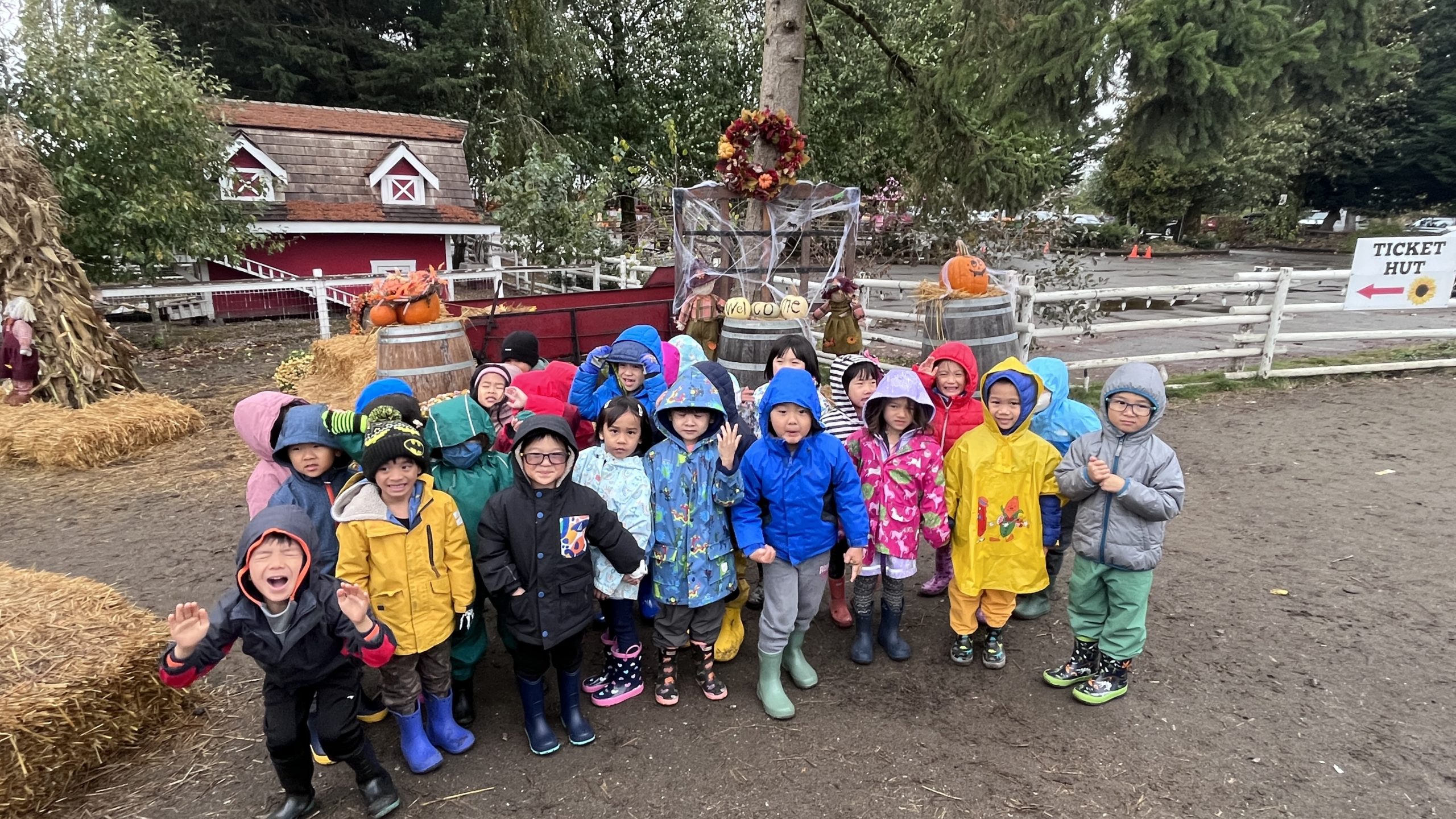 Here is a picture from our trip to the Pumpkin Patch! Thankfully the rain stayed away for most of the afternoon and the children got to have lots of fun picking their pumpkin, singing songs on the wagon and seeing all the animals at the farm.